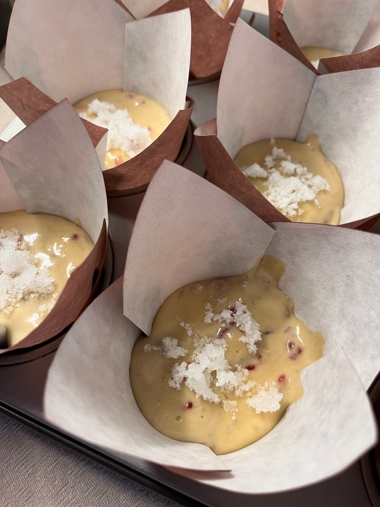 Precalienta el horno a 170º con calor arriba y abajo y aire. Cuando esté caliente mete rápidamente los muffins. Yo siempre pongo la bandeja un nivel más abajo del central, para que se hagan bien sin llegar a tostarse. En este caso, incluso así, se me han quedado más morenos de la cuenta 😊