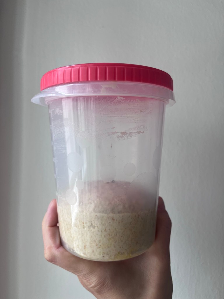 Algunas de las veces que hago pan, una vez que he guardado en la nevera la parte de la masa madre que reservo para la siguiente vez, me suelen sobrar unos gramos que, por la poca cantidad que representan y porque normalmente están pegados a las paredes del bote, termino tirando por no complicarme mucho.