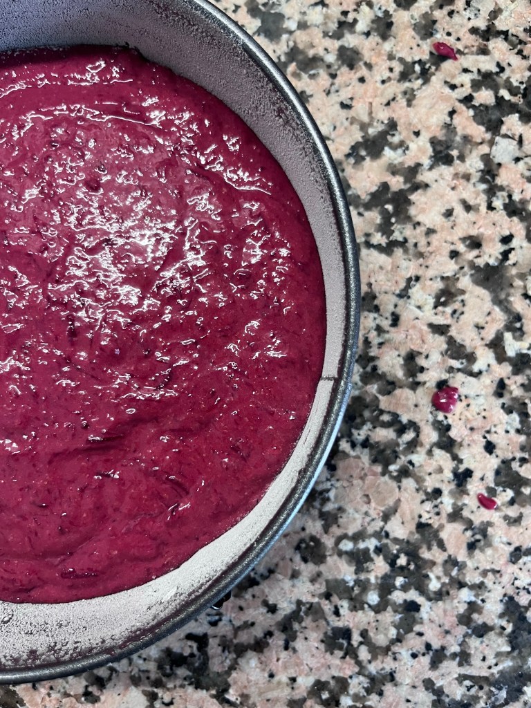 Por último, añade la remolacha cocida y ya tendrías la masa lista. El color es una pasada aunque se oscurecerá con el horneado.