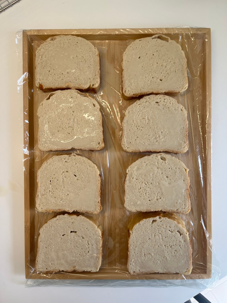 Si tú también te quieres subir al carro de las torrijas para Semana Santa, pero te da nosequé tener que freír, esta es tu receta. Consigue unas torrijas resultonas y libres de lácteos en un pispás.